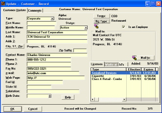 Update Customer window